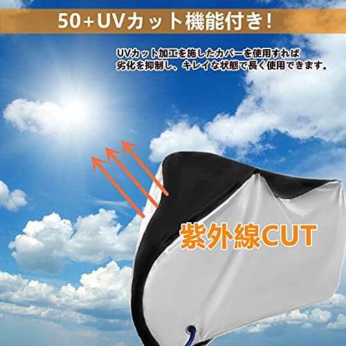 【防水性抜群&UVカット】50+UVカットとシルバーコーティングでカバーや自転車本体の劣化の原因となる紫外線を反射して大幅にカットします。風の侵入を防ぎバタつきを抑え、雨、雪、ほこり、ゴミ、摩擦などから最小限に抑えることができます。撥水加工の効果は通常の2倍、水が入らないよう縫い目にも全てしっかりと撥水加工を施していて、防水性が強い。