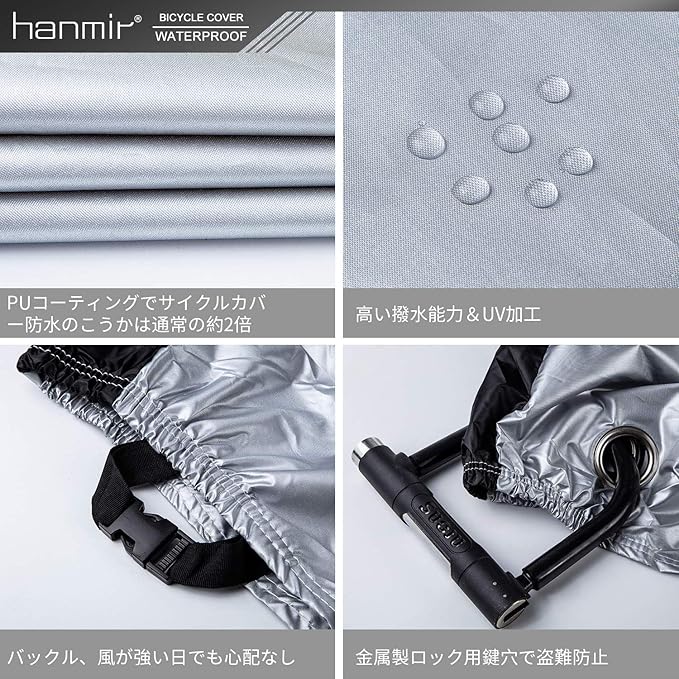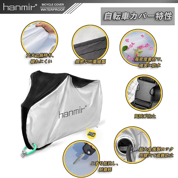 Hanmir 自転車カバー サイクルカバー 厚手 防犯 防風 防塵 耐熱 UVカット 撥水加工 破れにくい 鍵穴盗難防止 雨雪対応き 29インチまで対応 収納袋付き