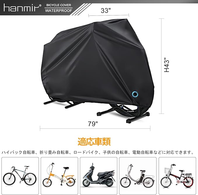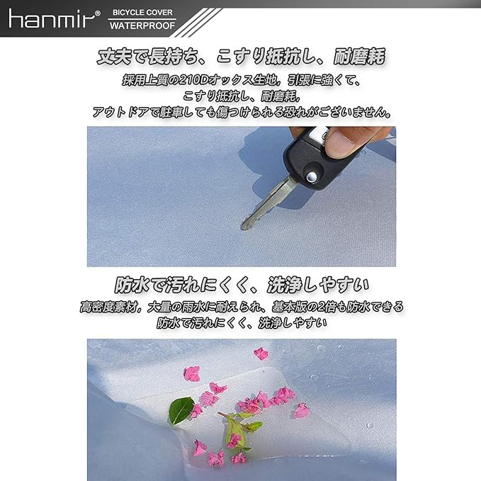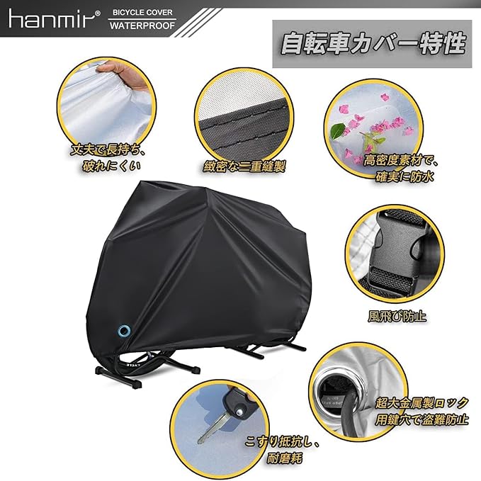 Hanmir 自転車カバー サイクルカバー 厚手 防犯 防風 防塵 耐熱 UVカット 撥水加工 破れにくい 鍵穴盗難防止 雨雪対応き 29インチまで対応 収納袋付き