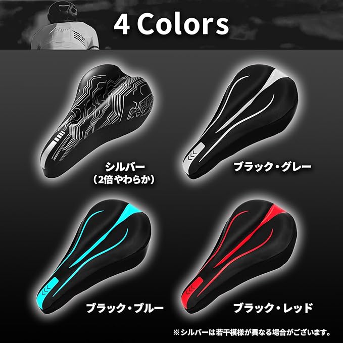 自転車サドルカバー お尻が痛く無い 超肉厚 ロードバイク (ブラックシルバー) (ブラックシルバー, ロードバイク)