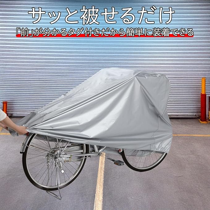 雨・ホコリから自転車を守る!すっぽりかぶせる自転車カバー ファミリーバイク兼用。