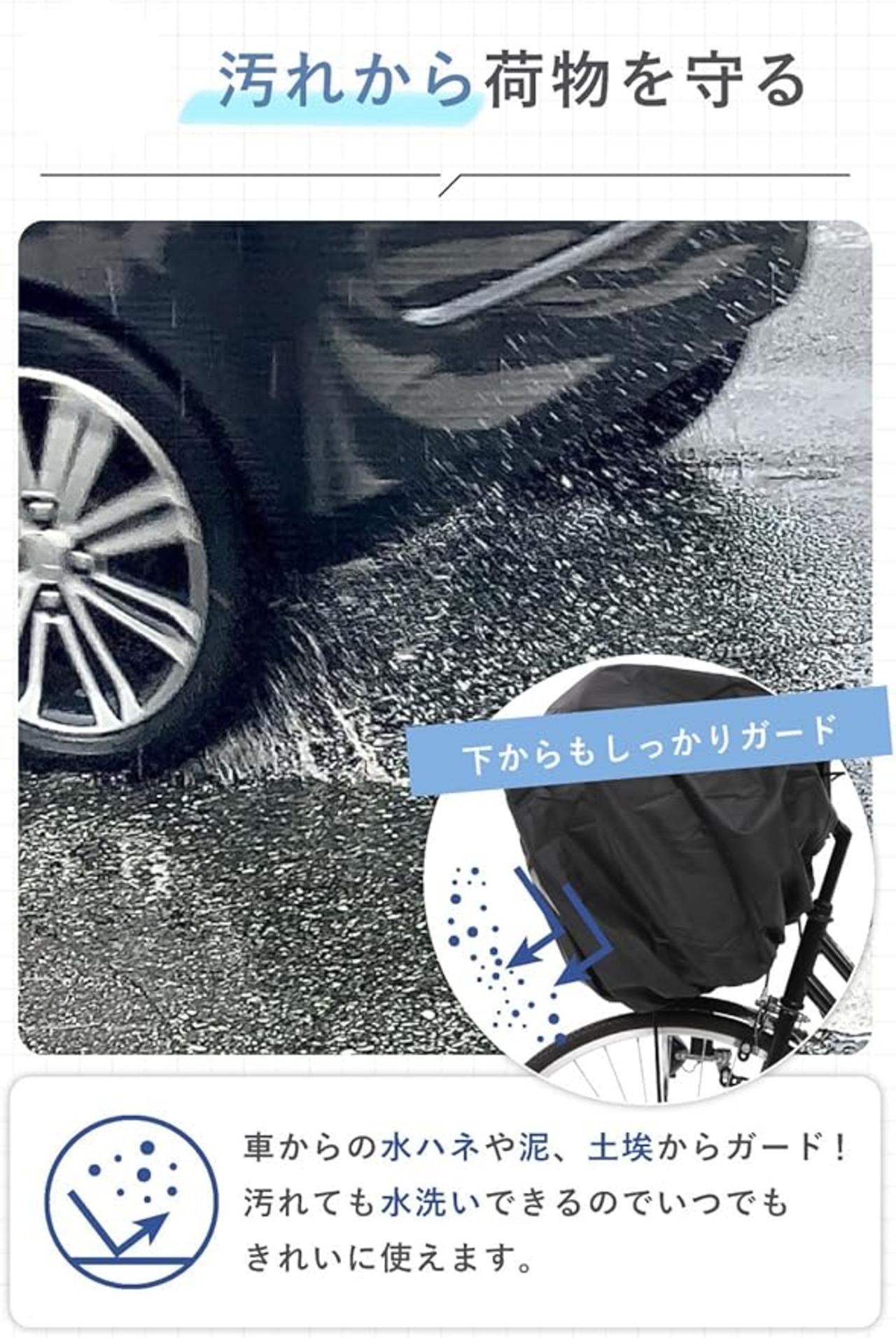 大きなリュックにも対応 通学 の際の大きなバッグを 自転車 前かご に入れたまますっぽりと覆う事ができる大きめサイズの 自転車カゴカバーです。※余った布地はカゴ内やカゴと本体の間等に入れてお使いください。
