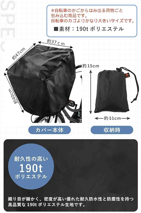 VILAU 自転車カゴカバー 防水 前後カゴ兼用 大きいサイズ 後ろカゴ 防水カバー レインカバー 前カゴカバー 後カゴカバー 通勤 通学