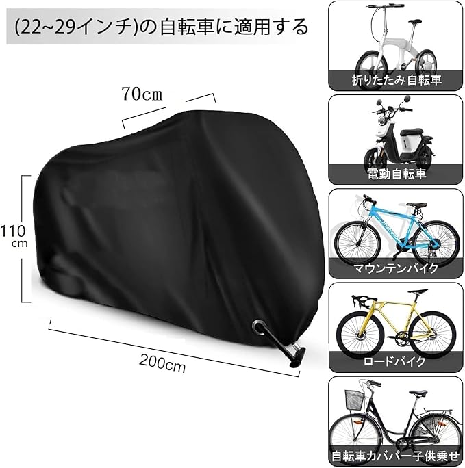 【29インチまでの自転車対応】サイズ:200*110*70cm、専用収納袋も付属されており、折り畳めばとても小さく収納できます!。購入する前に、バイク,自転車のサイズを確認してください。