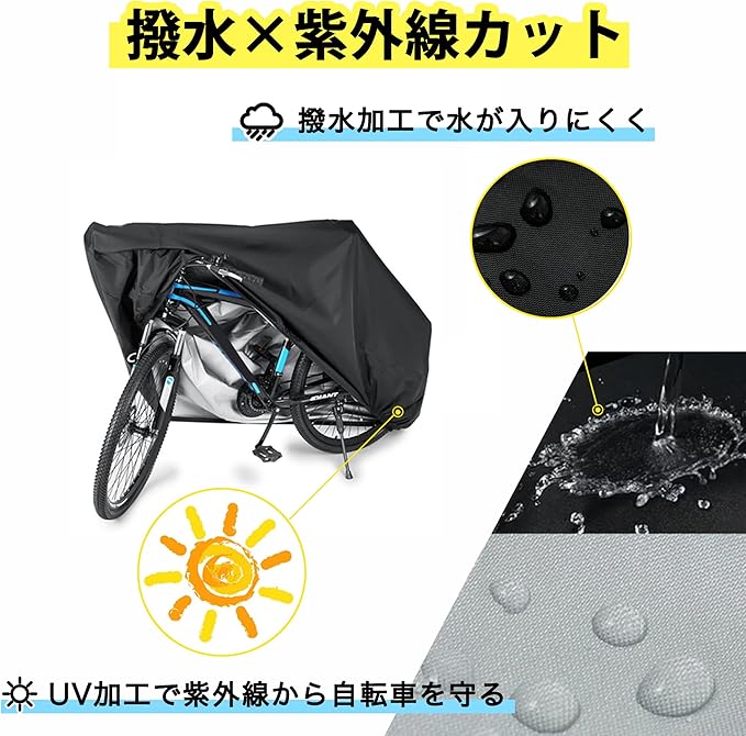 ★【撥水 紫外線カット】 撥水加工により水の侵入を抑え、大雨でも安心して使用できます。また、UV加工とシルバーコーティングを施した生地で紫外線からもしっかりと保護し、台風、雨、風、紫外線、砂ぼこりなどの天候条件から大切な自転車を守ります。