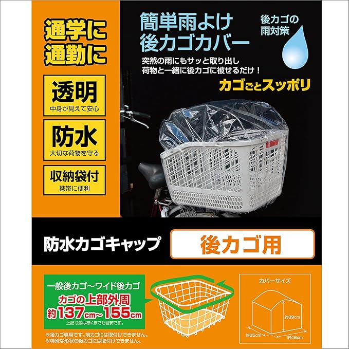 サギサカ(SAGISAKA) 自転車用 カゴカバー 防水カゴキャップ クリア