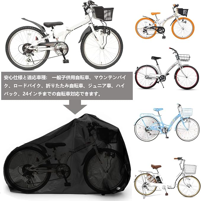 【安心仕様と大きいサイズ】:約180cm x 90cm x 60cm。立体裁断と絞りゴムより、風の侵入を防止、自転車にすっぽりと被せます。24インチまでの自転車に対応。サイクルカバーと同じの高品質素材の収納袋も付属されており、未使用時や持ち運びの際は専用ケースにコンパクトに収納できます。
