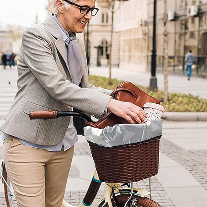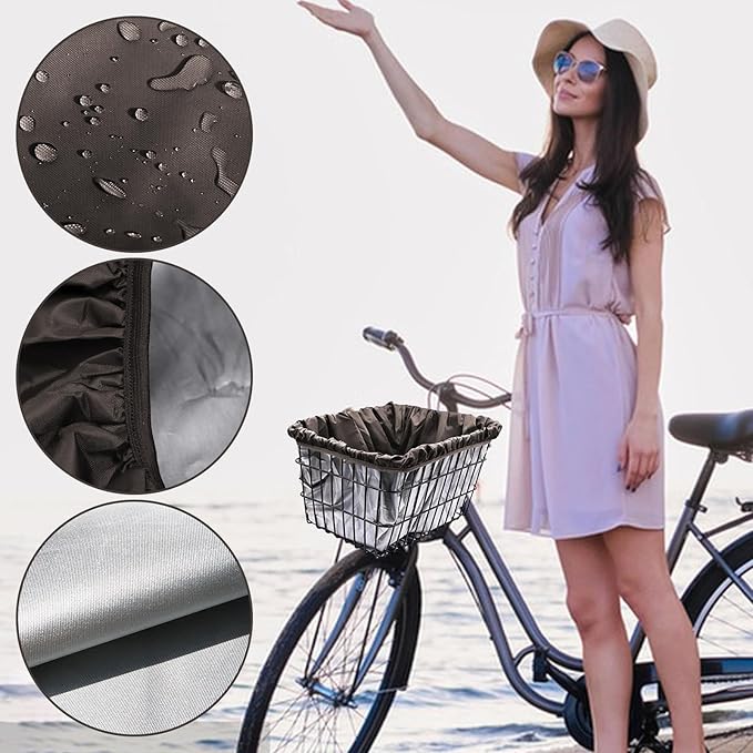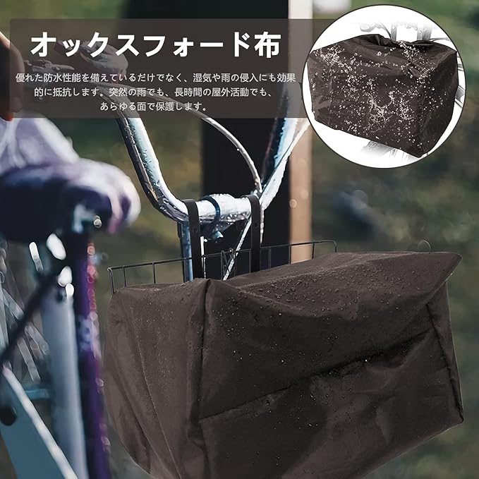 LEISURE CLUB 自転車 カゴカバー 前 防水 かごカバー 撥水加工 雨よけ 大きめ 自転車バスケットカバー (ブラウン, 42*33*25cm)