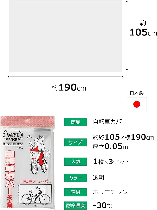 アルフォーインターナショナル 収納袋 なんでもパック 自転車カバー (大人用) 透明 1枚入 3冊セット 幅190 縦105cm 厚さ0.05mm 簡易防水 サイクルカバー 雨除け 風除け サビ防止 L-011