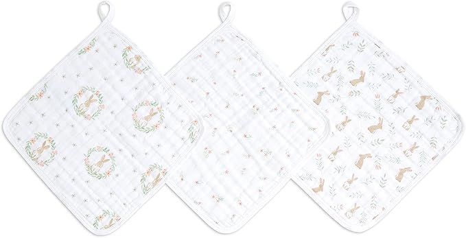 aden + anais(エイデンアンドアネイ) ウォッシュクロス ブラッシングバニー 3枚セット モスリンコットン ループ付き 出産祝い EWCC30013