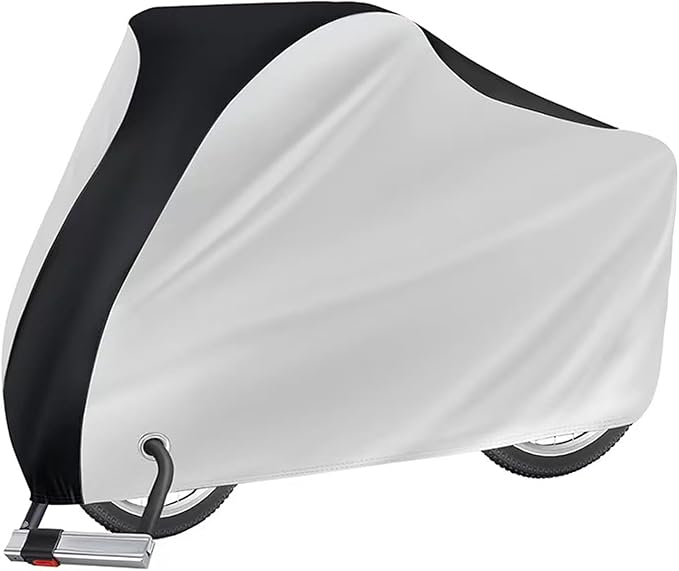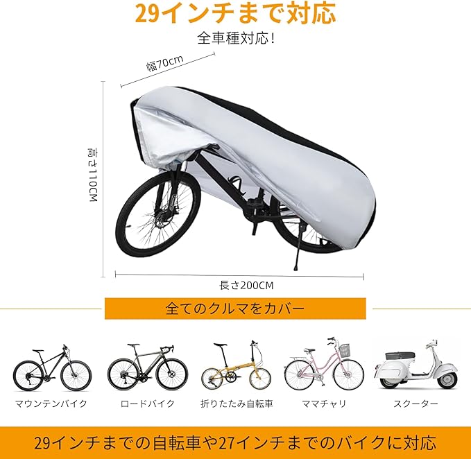自転車カバー 防水 厚手 破れにくい サイクルカバー 210D 電動自転車カバー 防犯 防風 防塵 耐熱 UVカット 撥水加工 盗難防止 全天候対応 丈夫 29インチまで対応 収納袋付き (ブラック&シルバー)