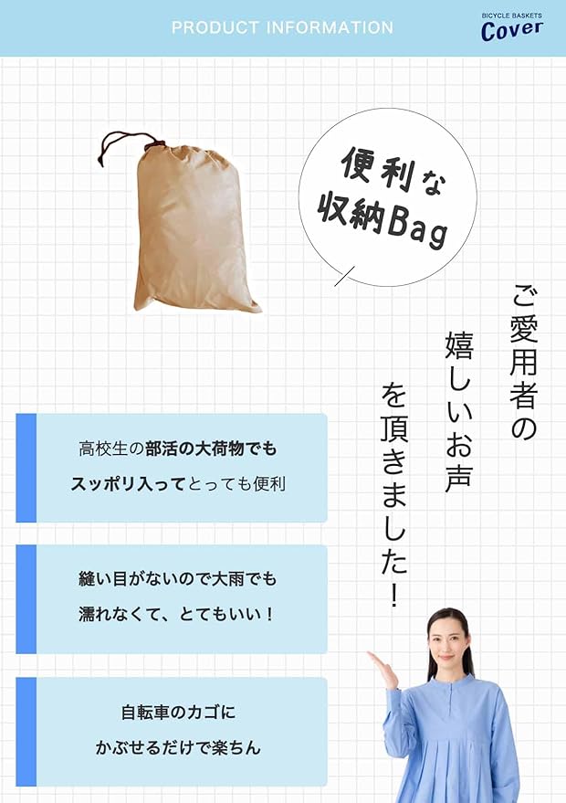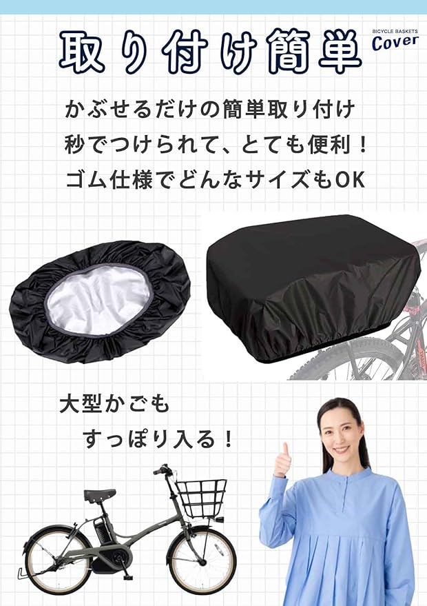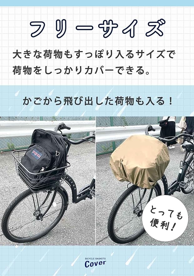 【前も後ろもこれ1枚で対応!】前カゴにも後ろカゴにもフィット。どんなカゴのサイズでもOKでとても便利です。