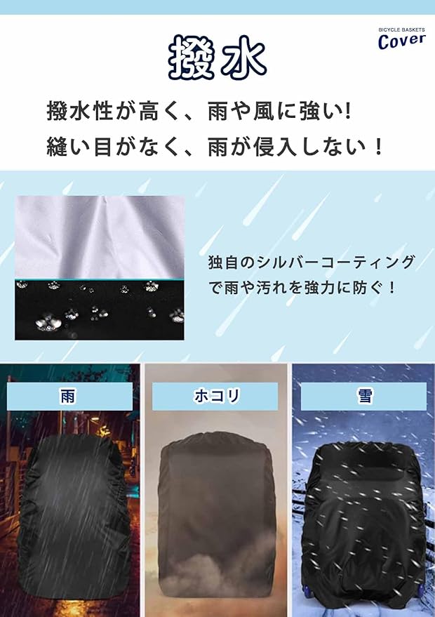 【雨の日も安心、防水&防塵!】丈夫な190Tポリエステル生地を使用。水やホコリをしっかりはじいて、荷物を清潔・安全に守ります。縫い目がないので雨が侵入しません!