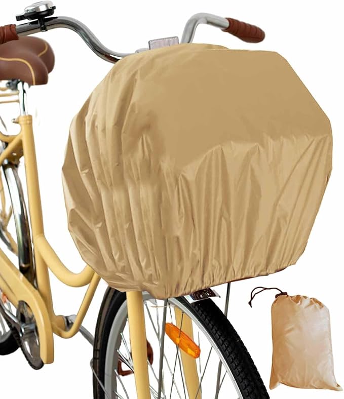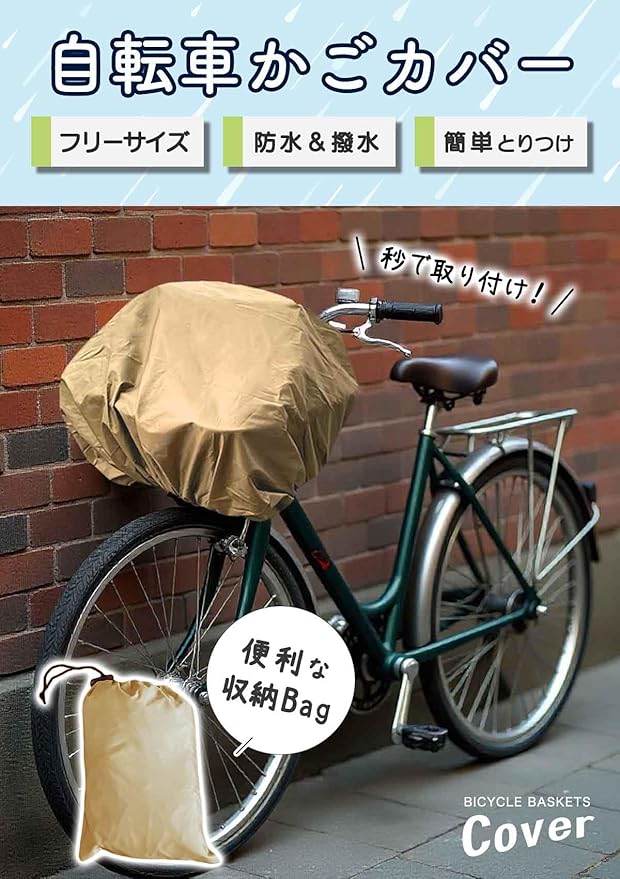 自転車カゴカバー 自転車かご用 防水 巾着袋付き 前 後ろ 防水カバー 雨 ブラック バイク フリーサイズ 撥水 レインカバー 前かご 後ろかご 兼用 (ベージュ)