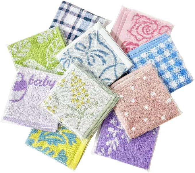 【洗い替え便利な】綿100% レディース タオル ハンカチ 10柄10枚組 ギフトラッピング (23 23㎝)お返し用 プチギフト 個包装 景品 粗品 退職 サンキューギフト