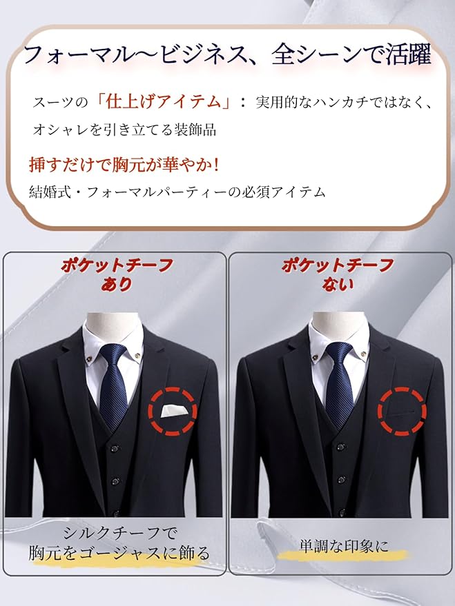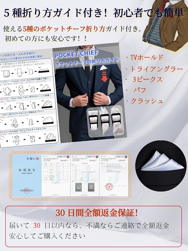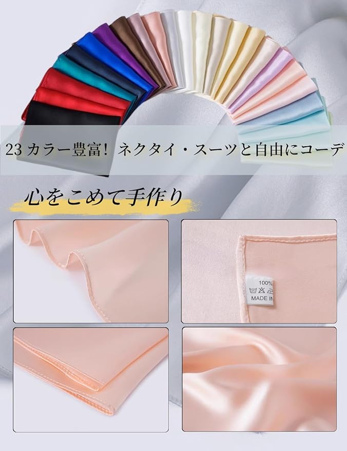 [Beirou] メンズ ポケットチーフ 100%シルク 16匁 高級光沢 【ホルダーと折り方ガイド 付き】 型崩れ防止 結婚式 パーティー ビジネス 35 35cm 無地 23カラー選べ | KAZESHOP