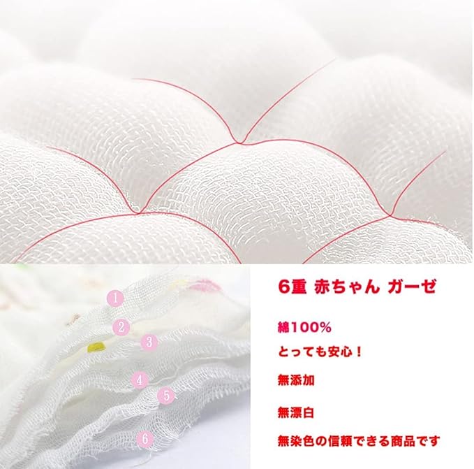 赤ちゃんのために特別に設計されたガーゼタオルは、6層構造で柔らかく、肌に優しい綿100%素材を使用しています。