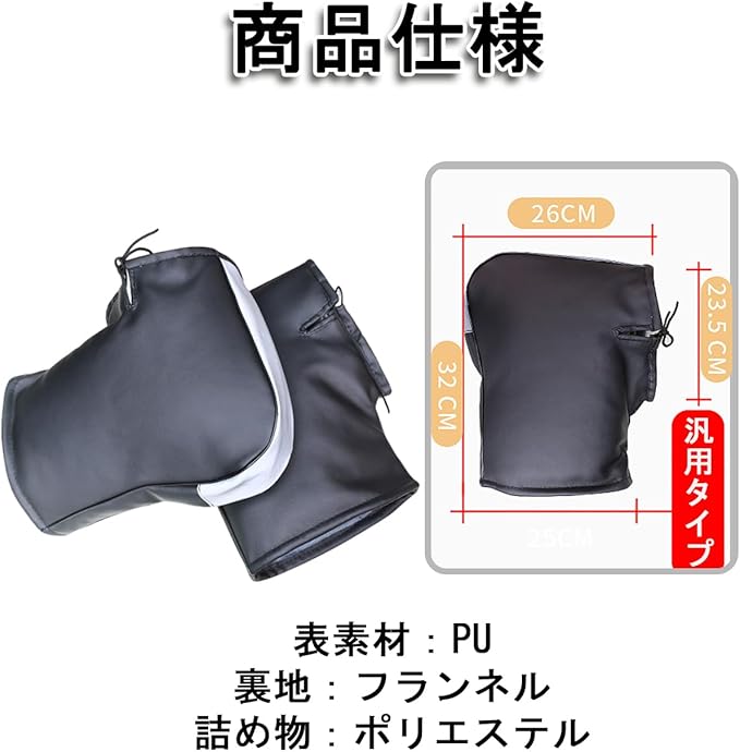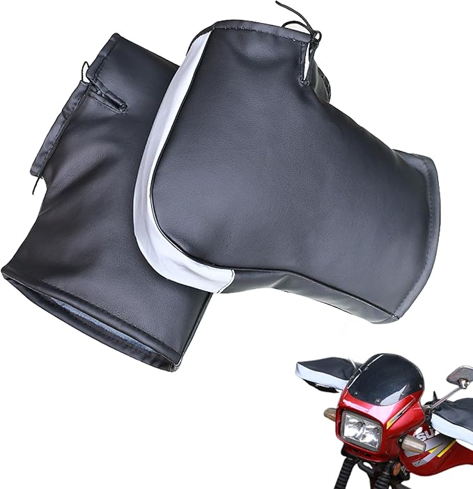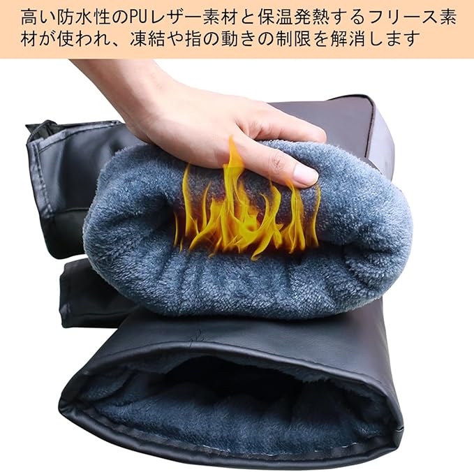 【裏起毛&防寒】寒い冬の日に指先が凍りつくと走行が困難になることがあります。裏起毛ハンドルカバーは指先を保護し、快適で安全な冬のバイクライディングを可能にします。高い防水性のPUレザー素材と保温発熱するフリース素材が使われ、凍結や指の動きの制限を解消します。