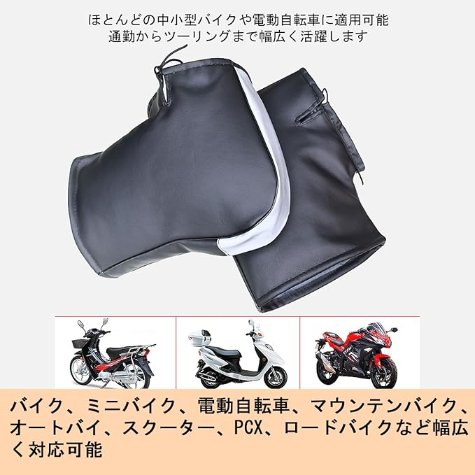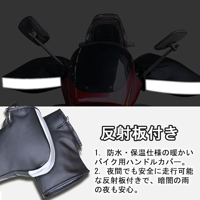 バイク用ハンドルカバー 防水防寒 裏起毛 極厚 防風対策 ハンドルウォーマー PUレザー素材 反射テープ付き 取付簡単 オートバイ 自転車 キックボード 冬用グローブ 防寒 保温 洗える 繰り返し使用可能