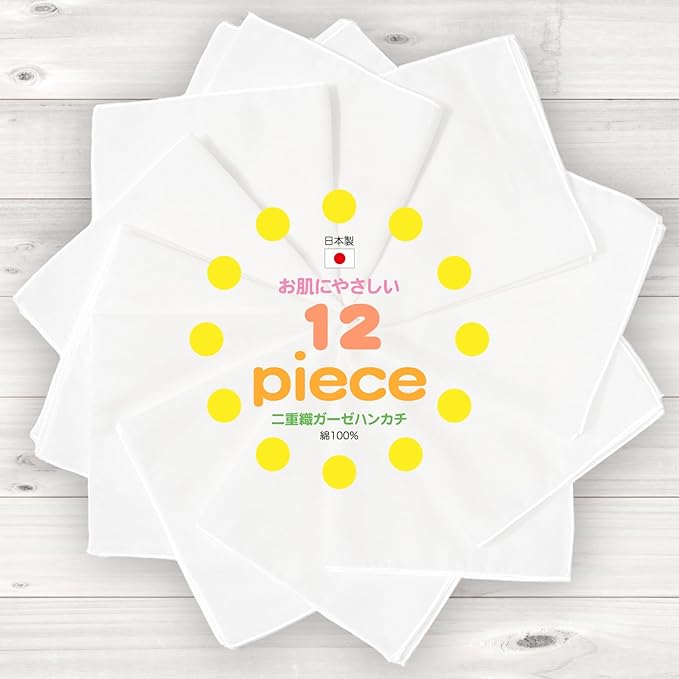 [クラスタ]【12piece】 ガーゼ ハンカチ 12枚 セット綿100% メロー縫製 日本製 ホワイト 二重織 ガーゼ生地 赤ちゃん ベビー用 出産準備 お口拭き よだれふき 沐浴ガーゼ 無蛍光 無塩素加工 学校用 幼稚園