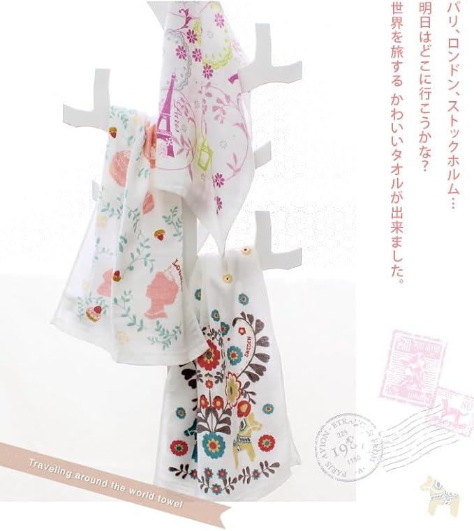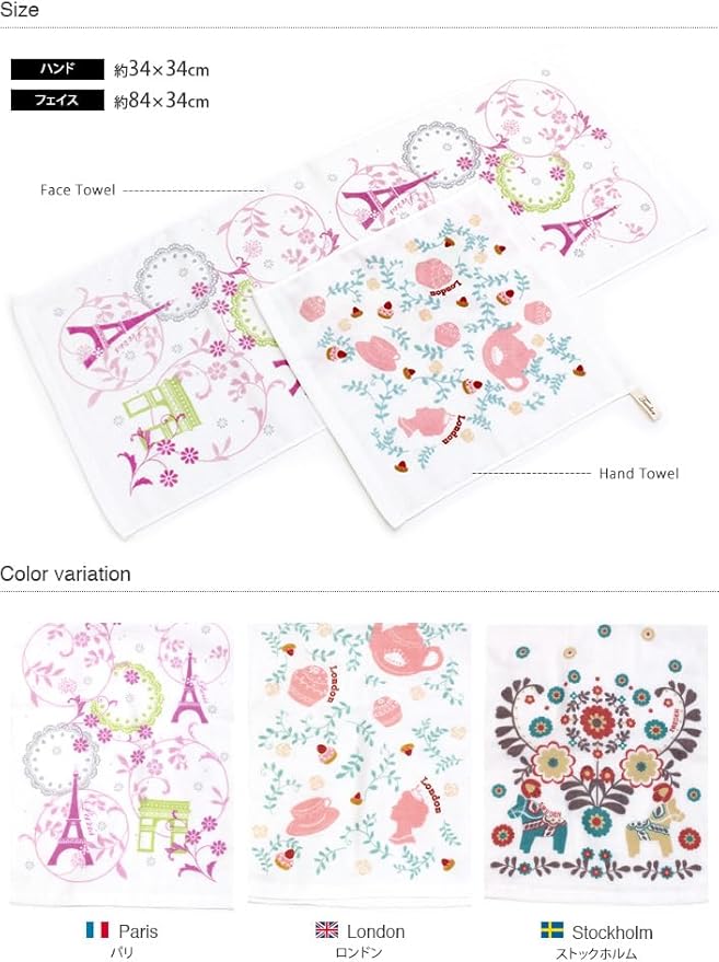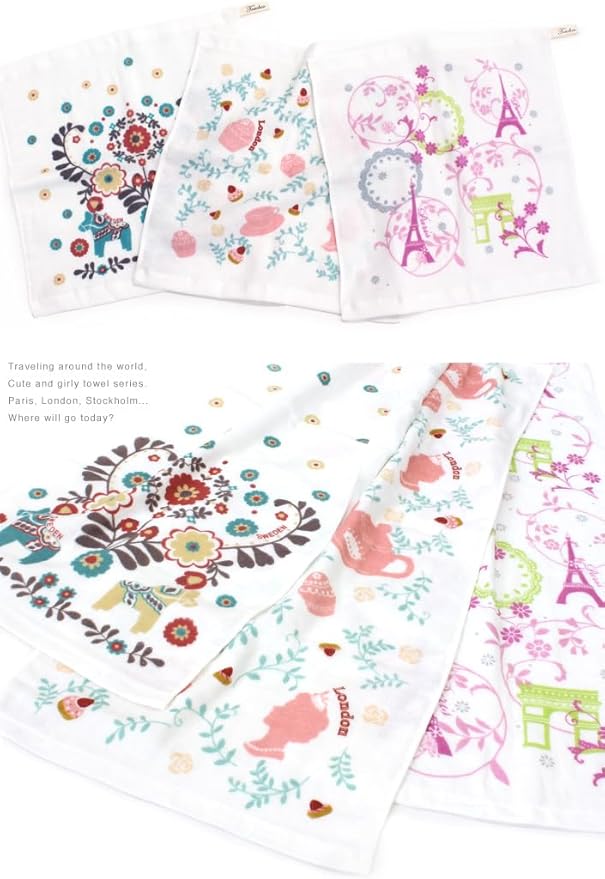 【ハンドタオル 3枚セット】生産地:日本 素材:綿100% サイズ:約34 34cm セット内容:ハンドタオルアソートメント3枚(パリ+ロンドン+ストックホルム)