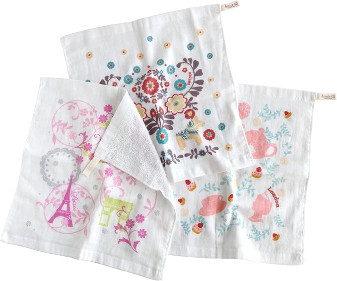 hiorie(ヒオリエ) ハンドタオル ガーゼタオル 3枚セット かわいい旅柄 日本製 薄手 速乾 旅シリーズ3枚セット