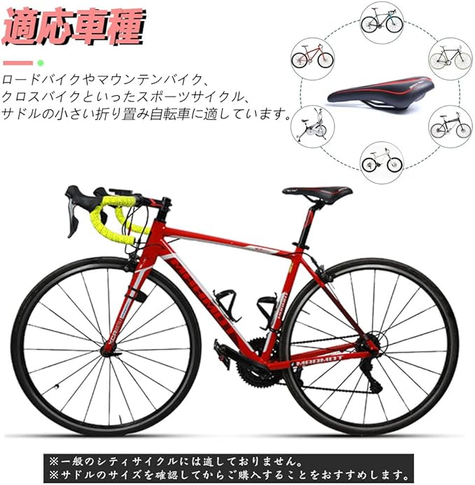 楽になる:超肉厚な記憶スポンジとシリカゲルの内蔵でやわらかい着座感をさせます。自転車で長い時間を走行してお尻の負担を軽減し、快適な運動できます。圧迫感のないセンターホールタイプで、街乗りはもちろん、長距離ロードにも快適です。