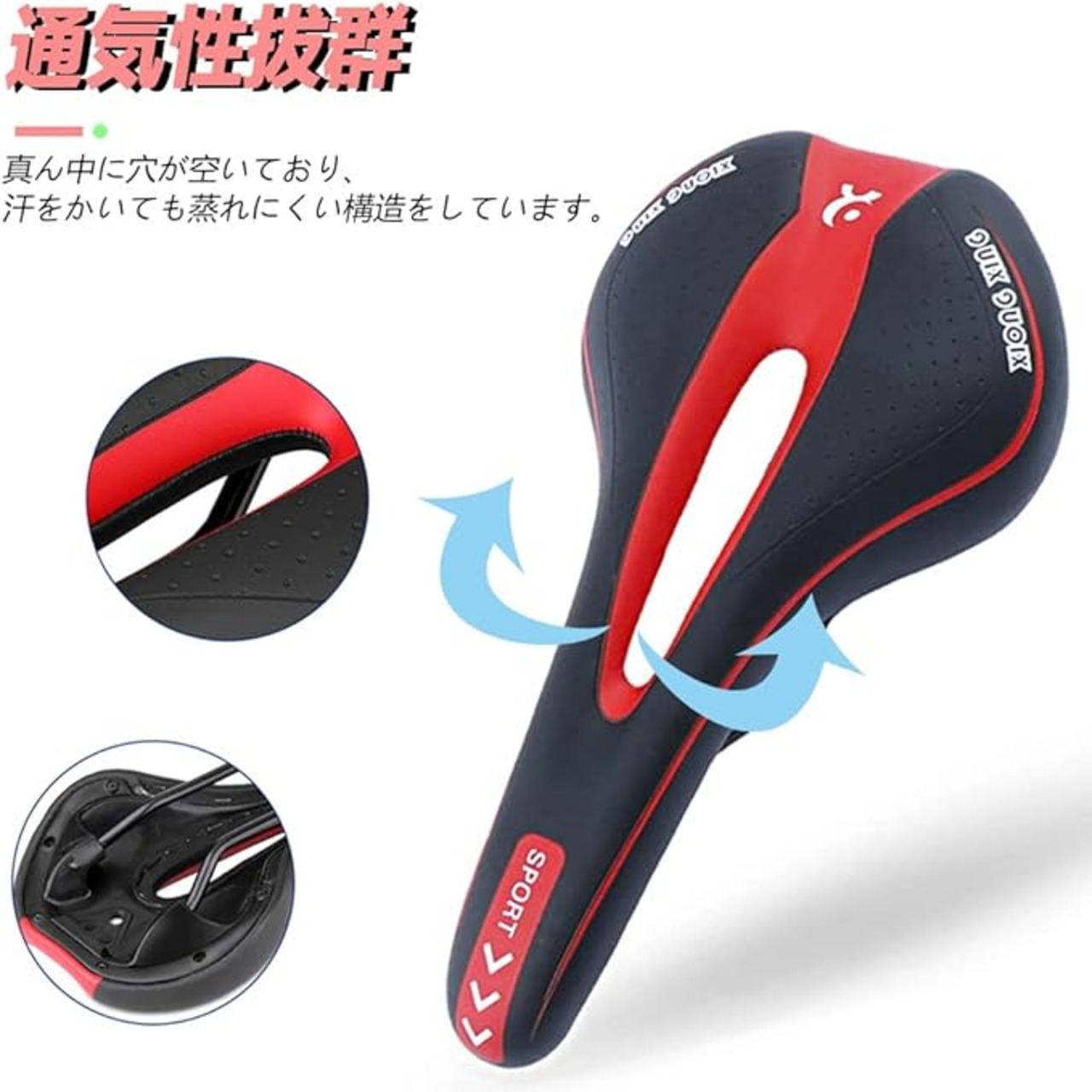 穴空きのデザイン:中央が空洞になっている事によって股間に掛かる荷重が軽くなり、結果痛みが少なくなるという事になります。お尻の痛みに悩んでいる方におすすめです。で通気を保ち、尿道対策、血管、神経、性器へのストレスを軽減します。