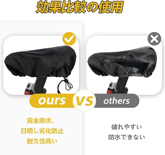 【材質】420Dオックスフォード生地を採用し、防水とUV カットができる高機能性です。環境によるサドルの劣化、汚れ、濡れなどの心配が解消できます。