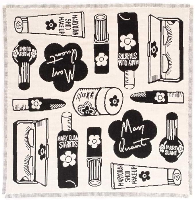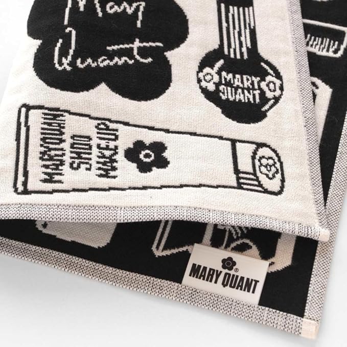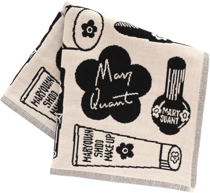 【MARY QUANT】 マリークヮント 三重ガーゼハンカチ(34cm)ブラック&ホワイト コスメ (アイボリー) 婦人 レディース タオル ハンドタオル 約34cm 001153-0002-01