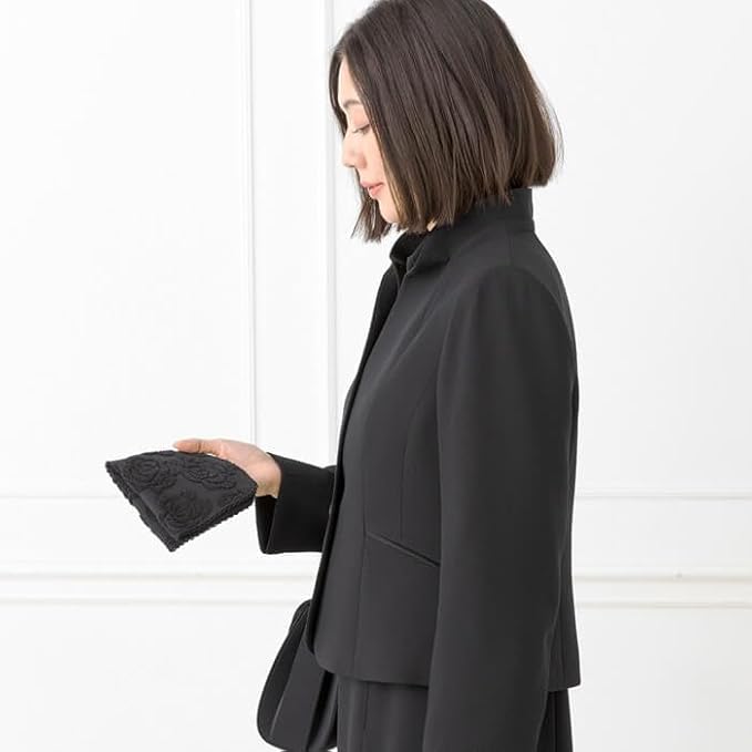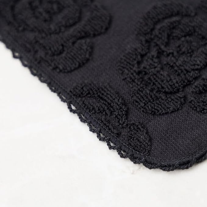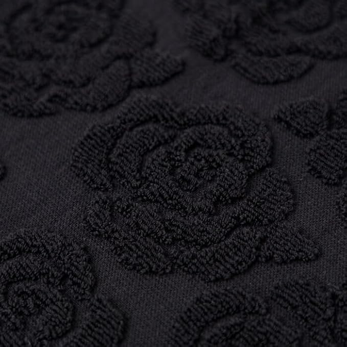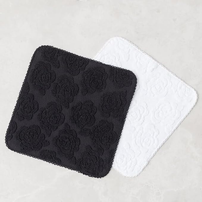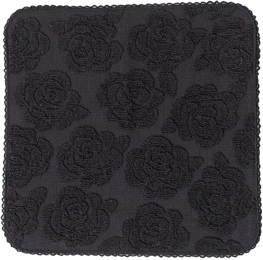 ローズモチーフのタオルハンカチ・黒(5664701-00-01)