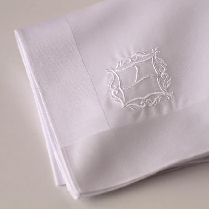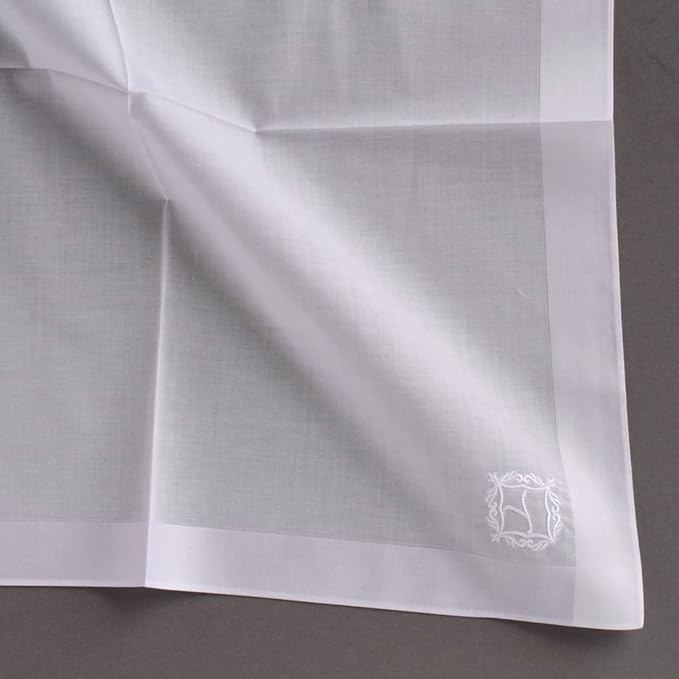 [ブルーミング] イニシャルコットン ハンカチ メンズ (ホワイト / 綿100% /約47cm) 紳士 ビジネス プレゼント ギフト