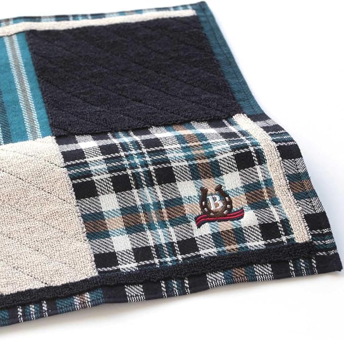 【 ブルックス ブラザーズ】2026年の干支【午】をテーマにした『馬蹄』モチーフの刺繍がアクセントのガーゼタオルです。チェック柄とストライプ柄のガーゼにパイルを組み合わせた4面デザインで、たたむ面でいろいろと楽しめます。 コーナーの【午】と、対角のブルックスブラザーズのGF(ひつじ・ゴールデンフリース)の刺繍がポイントの干支コレクションです。