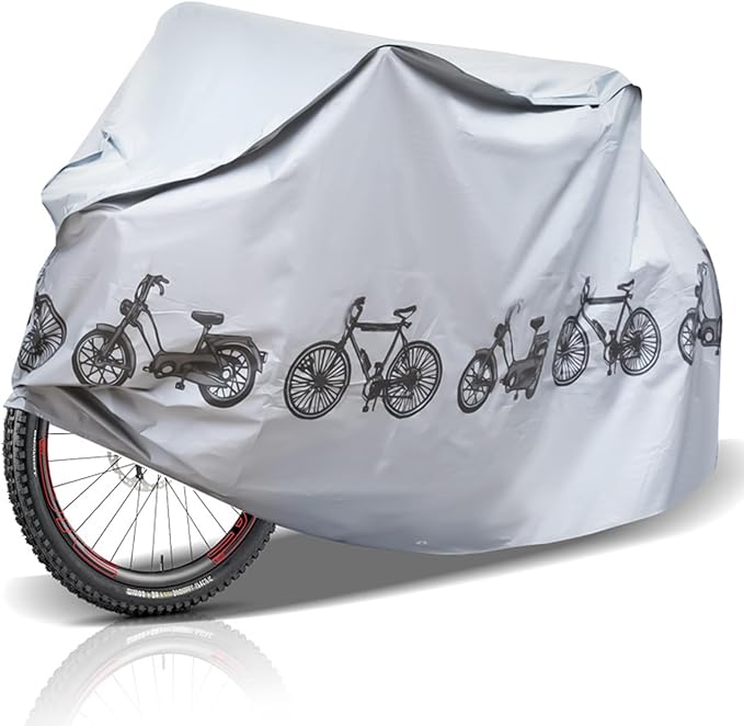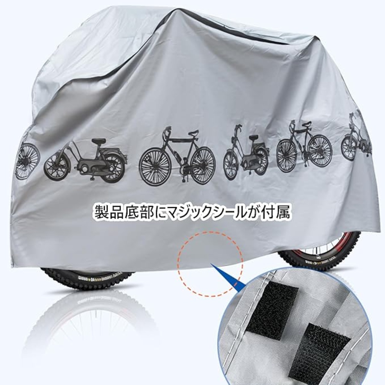 自転車カバー サイクルカバー 防水 厚手 丈夫 破れにくい 全天候対応 雨避け 防塵 マウンテンバイク / ロードバイク 用 シルバー