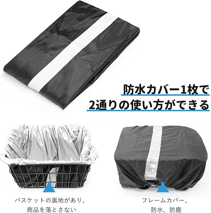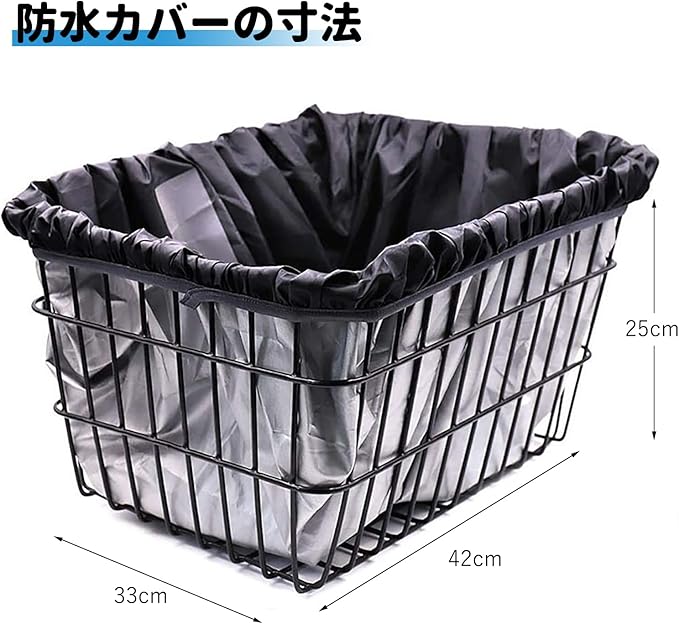 自転車 バスケット カバー 自転車カゴカバー 自転車カゴカバー 防水 耐摩耗性 防水保護カバー 前かごカバー 自転車用バスケットライナー 取り付けが簡単 大量 自転車アクセサリー ほとんどの自転車用バスケットに適合 42*33*25cm ブラック
