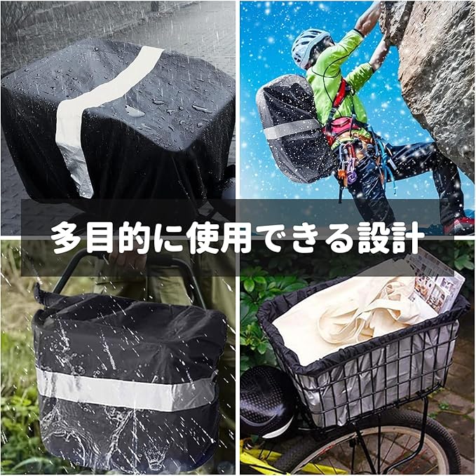 【多機能】ライナーはバスケットの内張りとしてだけでなく、暑い日差しから荷物を守り、落下を防ぐ役割も果たす。また、雨の日にはレインカバーやハイキング用バックパックカバーなどとしても使用できる。