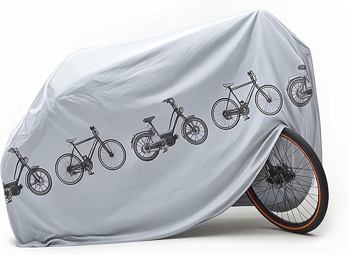 こちらの自転車カバーは、銀色の反射加工が特徴的なPEVA製の保護カバーです。75 62 48cmのサイズでお子様の自転車から一般の自転車、電動アシスト自転車までカバー可能。防雨・防塵に加え、紫外線カット効果で塗装の褪色やサビを防止します。軽量で柔軟な素材なので一人でも楽に被せられ、結束バンドで安定性を確保。コンパクトに折り畳めて収納袋に入るため、スペースを取らず持ち運びにも便利です。シンプルで実用的な設計が特徴で、面倒な手入れから解放され、自転車を長期間美しい状態で維持できます。屋外駐輪が多い方や、自転車を季節の影響から守りたい方におすすめです。