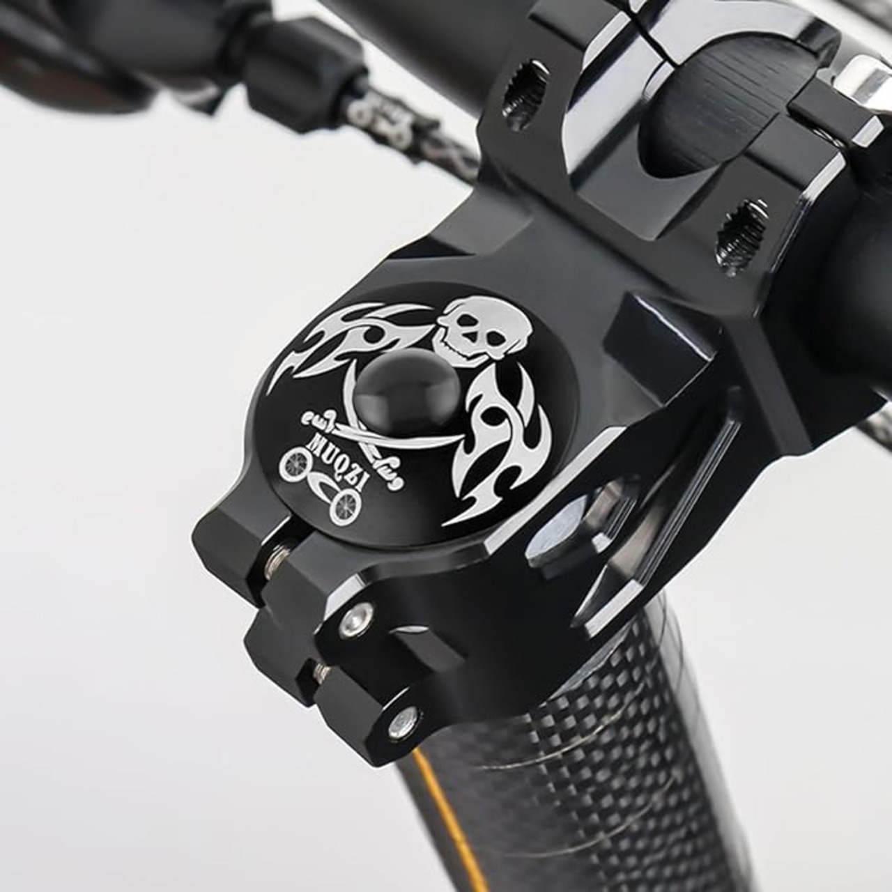 ヘッドセットのトップ キャップは、スレッドレス ステムの上に装着し、バイクにちょっとしたスタイルを追加します。蜘蛛の模様が入った独特の黒い丸いフォルムで、きっと気に入っていただけると思います。