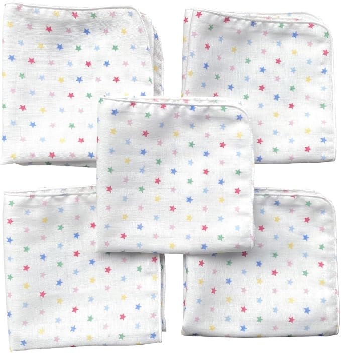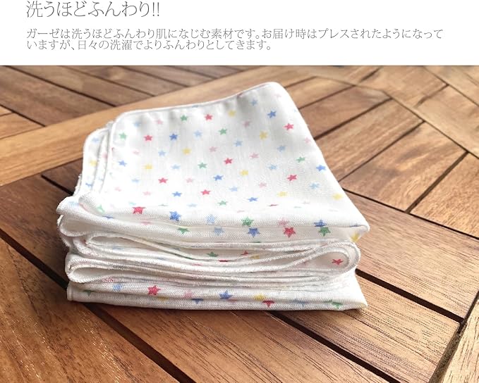 [マシュール] ガーゼハンカチ ホーミー柄 5枚入り 日本製 赤ちゃん 25 25㎝ 2層 ベビー 新生児 ダブルガーゼ よだれふき (星柄(白 カラフル))