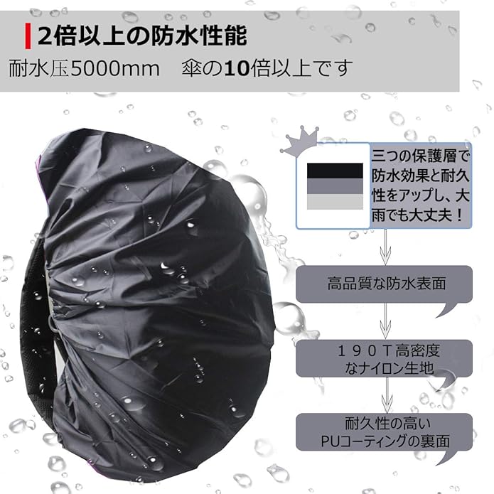 ★「全方面の保護」:強化のクロスバックルとゴムバンド付き、リュック全体にしっかり固定できます。強風、暴雨でも大丈夫です。