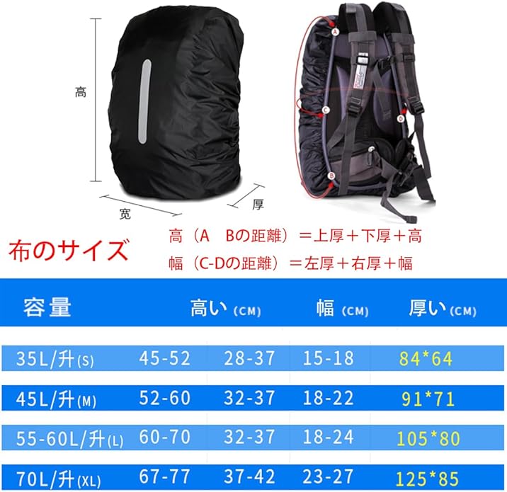 [ALLVD] リュックカバー ザックカバー レインカバー 強力防水 高耐久性 反射テープ 雨よけ 風飛び防止 夜間安全 盗難防止 アウトドア 通勤 通学 梅雨対策 防水カバー ザックカバー