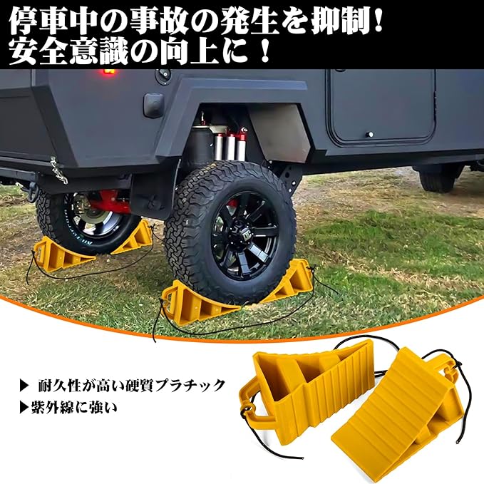 4個セットで経済的 - 車両の前後輪や複数台の固定に便利な4個セット。駐車場や工場での大量使用にも最適。