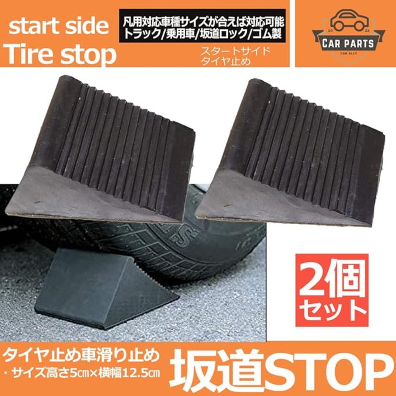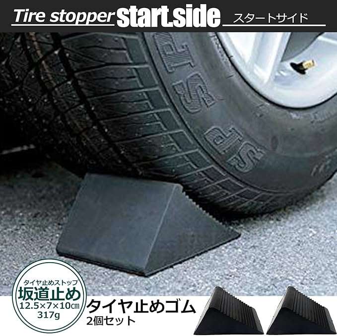 スタートサイド タイヤ止め ゴム タイヤストッパー 坂道ブロック ゴムストッパー 輪止め 車止め 置くだけ ストッパー (黒ブラック 2個)