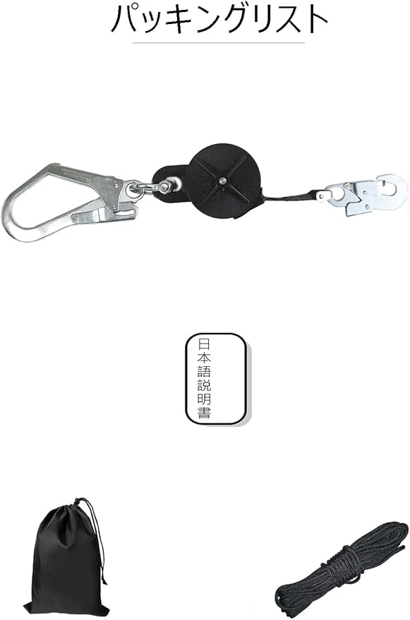 [Ulmior] 安全ブロック 3.4m 墜落防止装置(仮設用) 衝撃吸収 巻取式安全ブロック 昇降用 安全ブロック 昇降墜落防止装置 引寄せロープ 取り付き説明書 収納バッグ [安全帯 落下防止 電気工事 高所での安全作業] | KAZESHOP