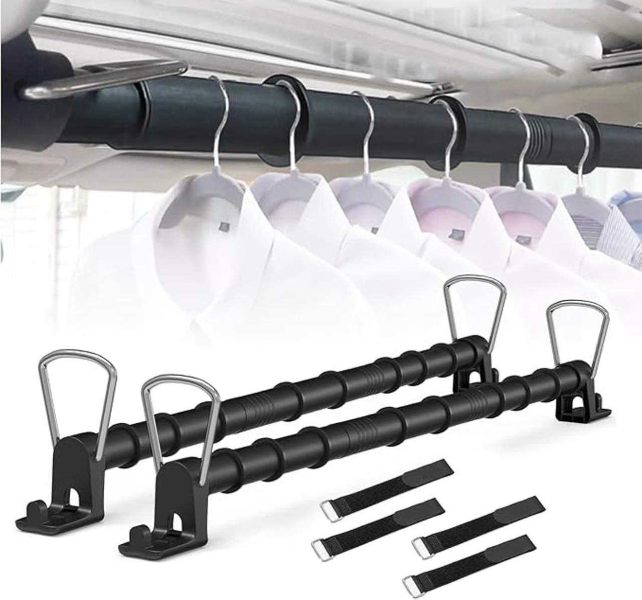車用ハンガークロスバー 多機能ハンドルバー 車用収納 釣り竿 置き 滑り止めの材質 衣類ハンガー ハンガーポール 車内用 引き込み式 76-159cm 伸縮自在 車用インテリア 天井収納 車中泊 工具不要 取付簡単 耐荷重22kg(1本セット) (2)