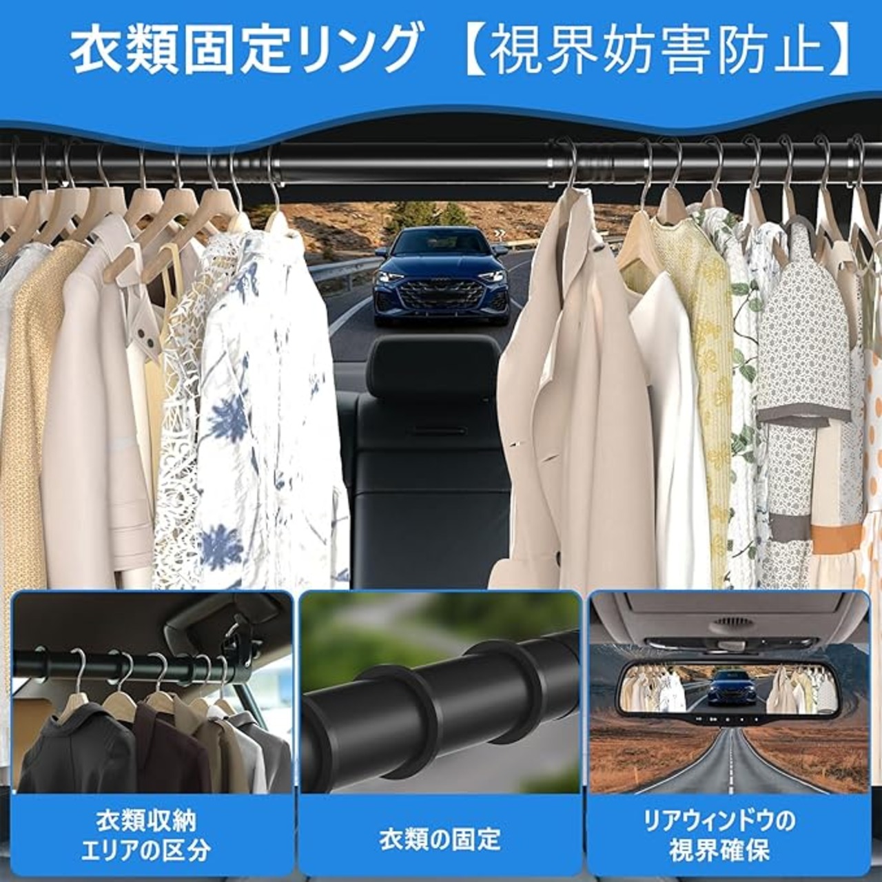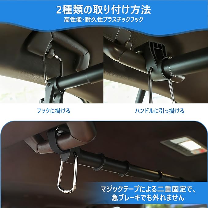 【多用途でシーンを選ばない車用インテリアアイテム】:ただのハンガーバーではなく、多機能ハンドルバーとして様々な用途に活躍。服のシワ防止、小物の整理、釣り竿の一時保管など、一台で多彩なニーズに対応。車用インテリアをスマートに進化させる必須アイテムです。
