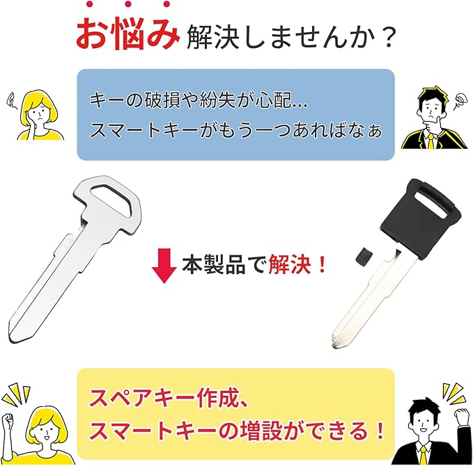 【専門店でのカット推奨・安定品質の社外パーツ】 当店ではカット(鍵加工)は行っておりません。 お近くの鍵専門店・カーショップでのカットを推奨します。 社外品ながら純正に近い形状と品質で、スペア作成時もスムーズにご使用いただけます。