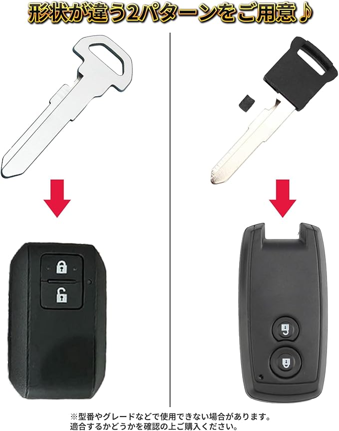 【選べる2タイプ/ご購入前の確認を】 形状の異なるAタイプ(U字型)・Bタイプ(角型)の2種類をご用意。 リモコンケースへの収納可否は車種・年式によって異なります。 ご購入前に必ず商品画像でお手持ちのkey形状をご確認ください。