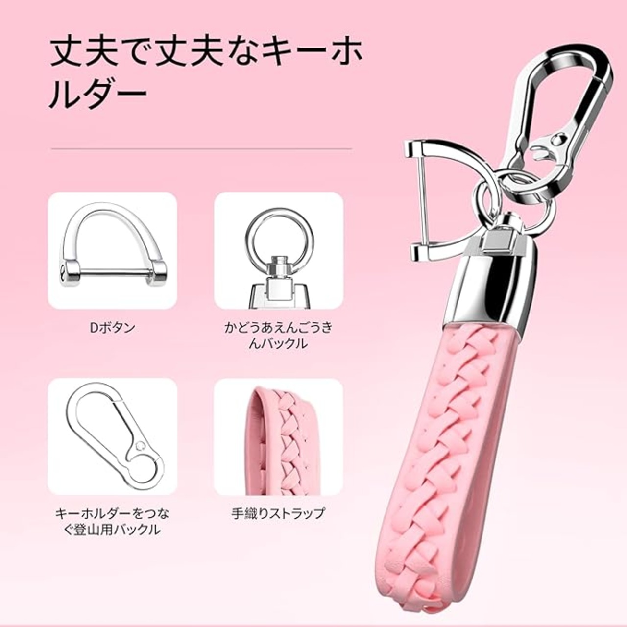 [ACEBOY] スズキ/suzuki スマートキーケース キーカバー 専用設計 本革+合金キーホルダー付き 新型ソリオ スペーシア フレアワゴン スイフト ジムニー ワゴンR クロスビー ハスラー対応 2ボタン (ピンク-4 ボタン)