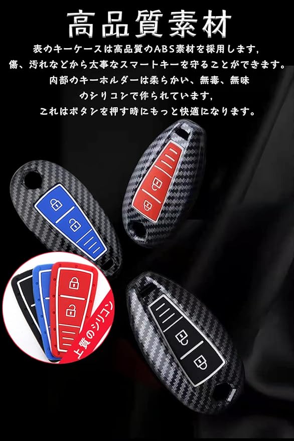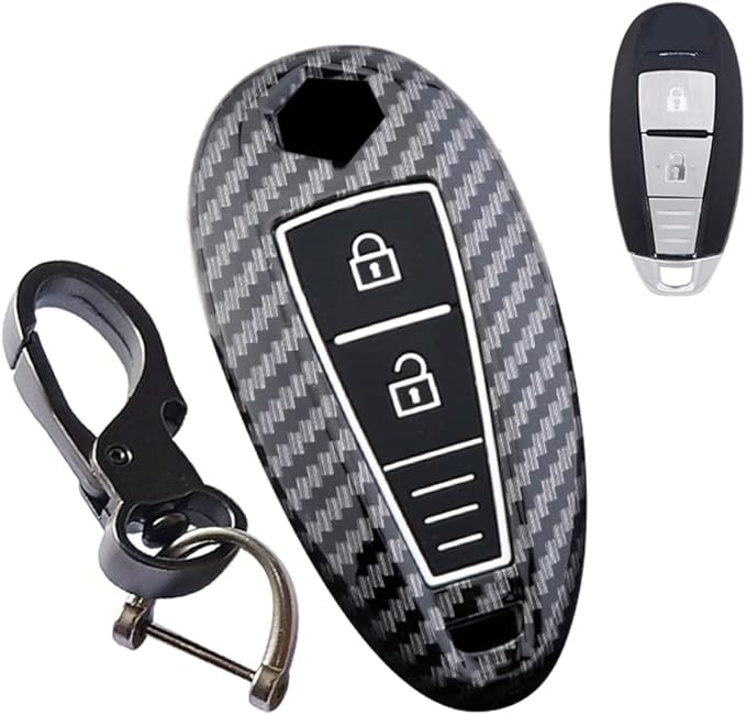 キーケーススズキ用 スマートキーケース キーカバー ABS プラスチック 3ボタン カーボン調 スズキ専用設計 SUZUKI SX-4 S-CROSS イグニス エスクード スイフト バレーノ等に適用 キーホルダー